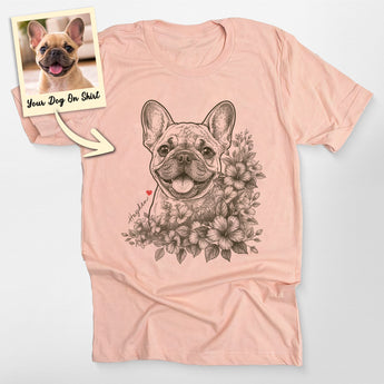 Personalized French Bulldog Shirts Floral Sketch Portrait Bella Canvas T-shirt
