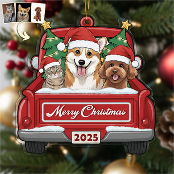 Funny Merry Christmas 2025 With Pets Acrylic Ornament