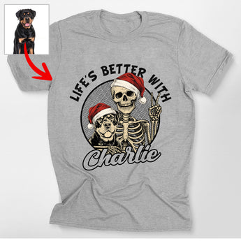 Life's Better With Dog Funny Skeleton Christmas Bella Canvas T-Shirt
