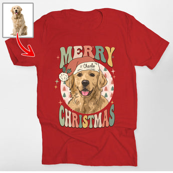 Custom Dogface Checkered Merry Christmas Bella Canvas T-Shirt