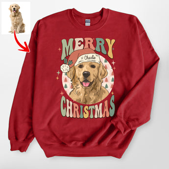 Merry Christmas Custom Dog Checkered Gildan Sweatshirt