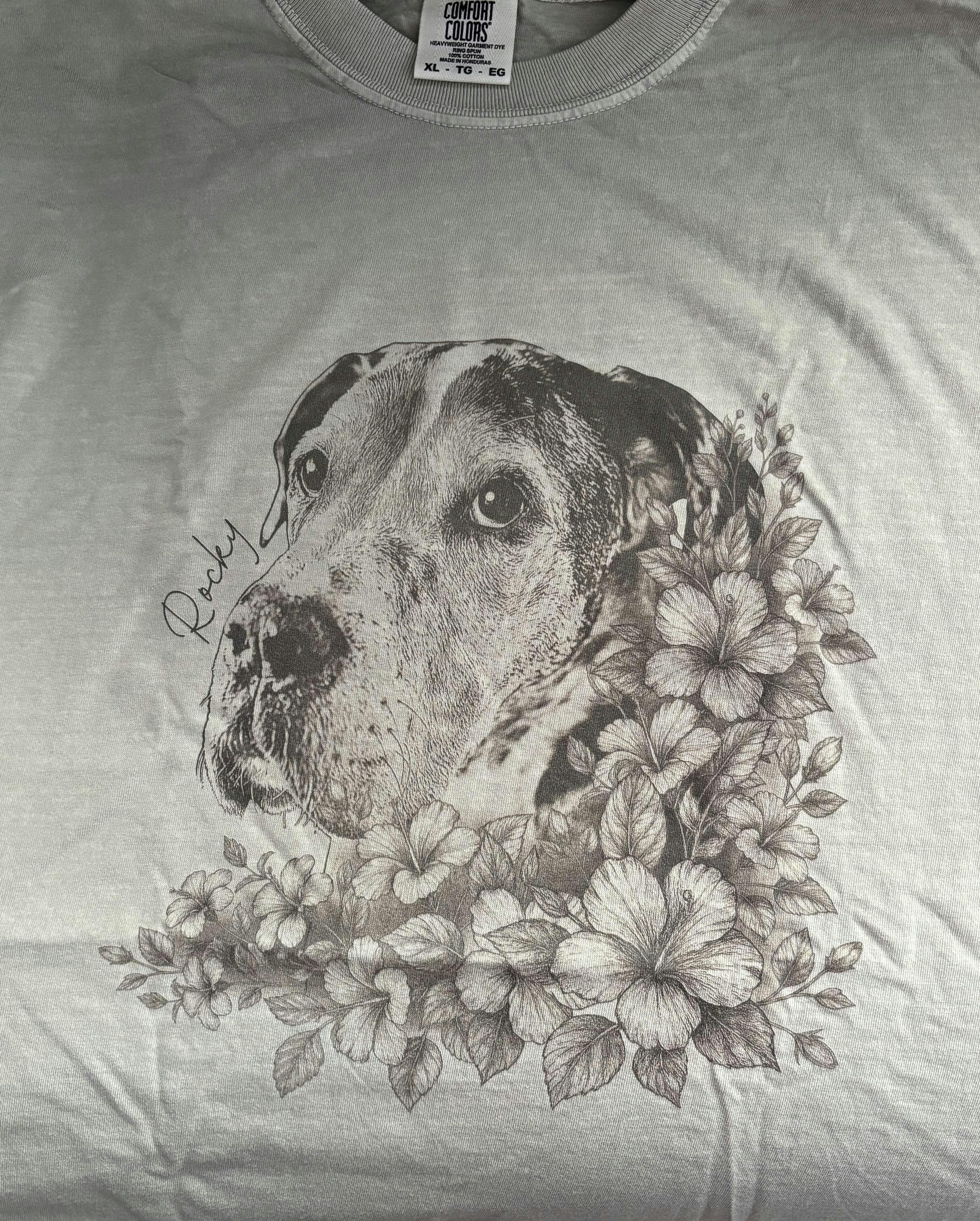 The image of my dog on the T-shirt was exactly as it was in the photo. And the floral design around it was beautiful. Definitely made me cry when I opened the package.