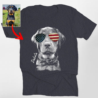 Custom Dogface Wearing American Flag Glasses T-shirt